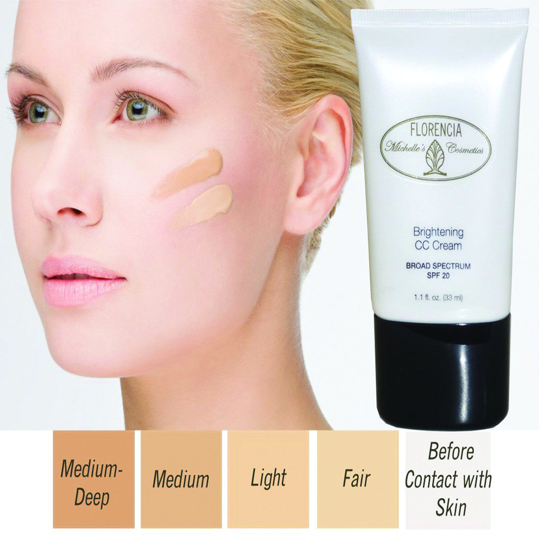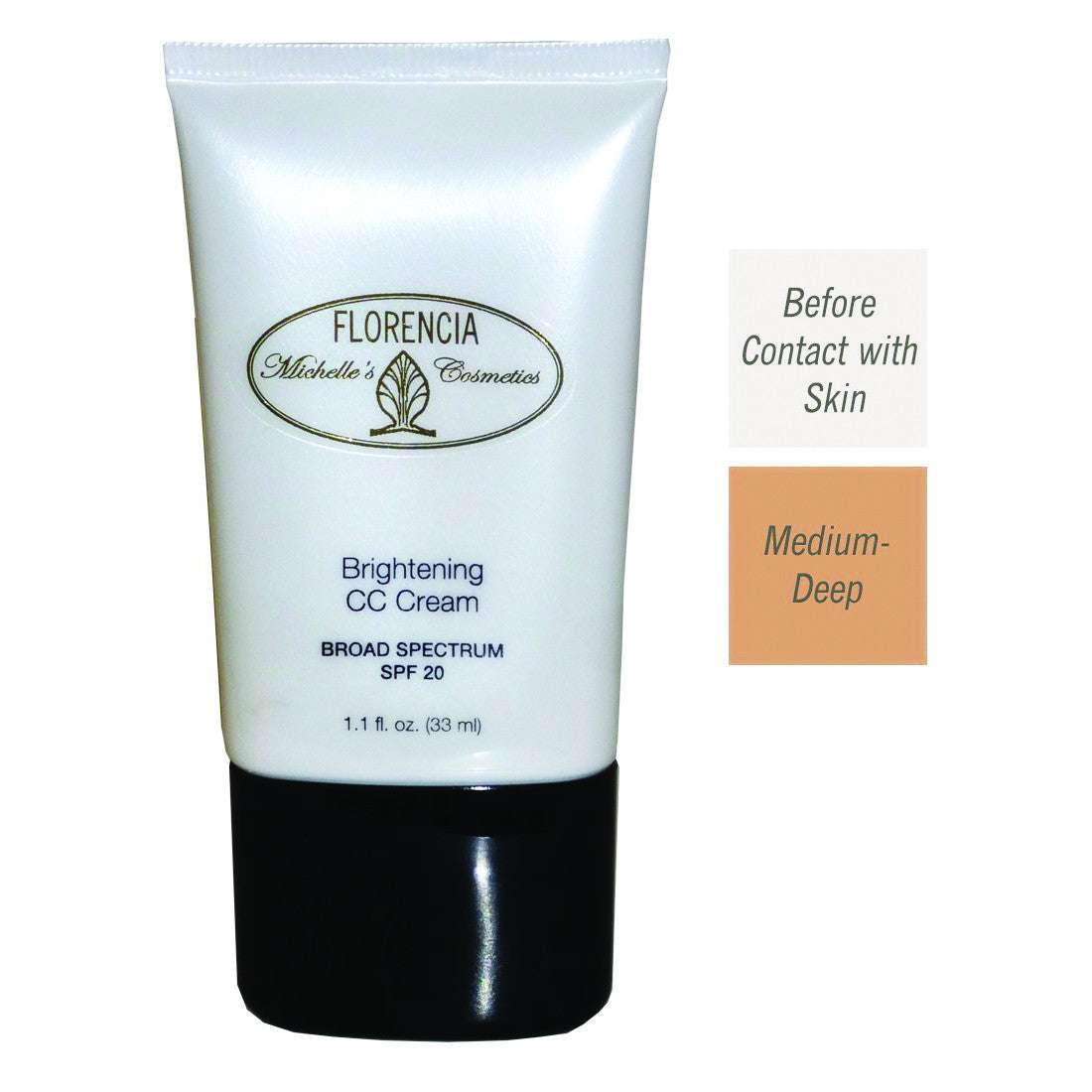 Florencia CC cream provides lightweight color coverage and correction, while protecting against damaging UV rays with Broad Spectrum SPF 20. Skin nourishing and brightening ingredients help even tone, diminish imperfections and maintain a healthy, youthful complexion.Lightweight, oil-free, color correcting cream with broad spectrum protection. Micro-encapsulated pigments adapt to individual skin tones; skin nourishing and brightening ingredients help even tone, diminish imperfections and maintain a healthy, youthful complexion.